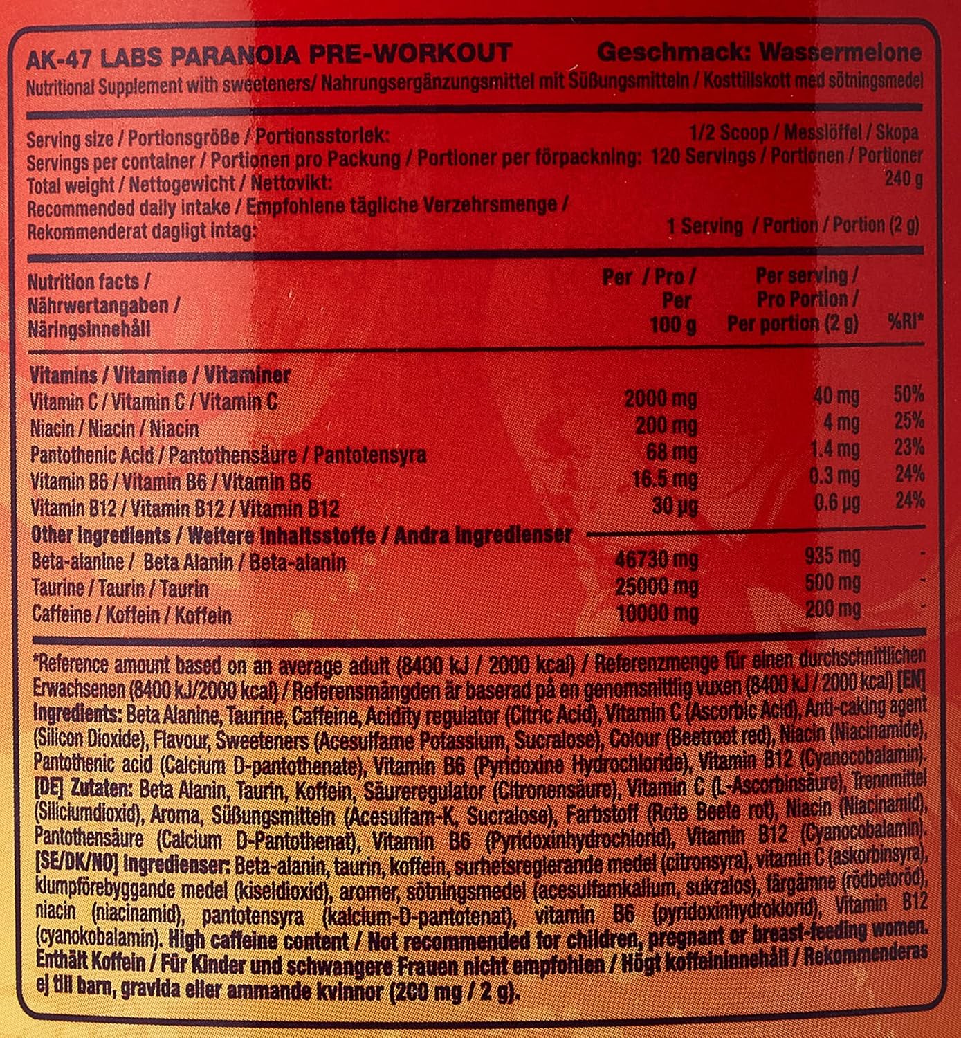 Suchst du ein Pre-Workout, das dir einen enormen Energieschub verleiht und Ihre Leistung auf das nächste Level bringt? Dann könnte das Paranoia Pre-Workout perfekt für dich sein!