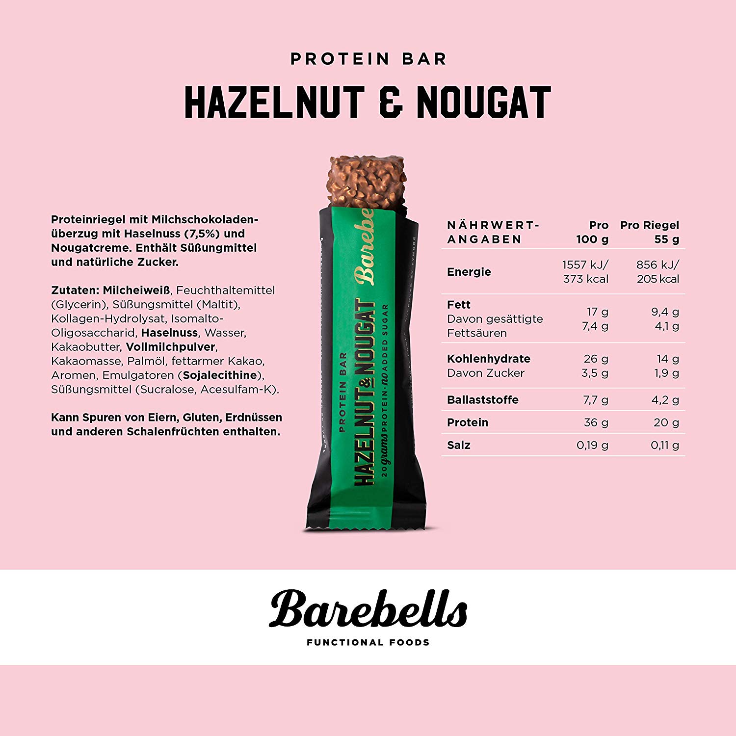 =Hoher Proteingehalt: Mit 20 g Protein pro Riegel unterstützen die Barebells Protein Bars effektiv den Muskelaufbau und -erhalt.