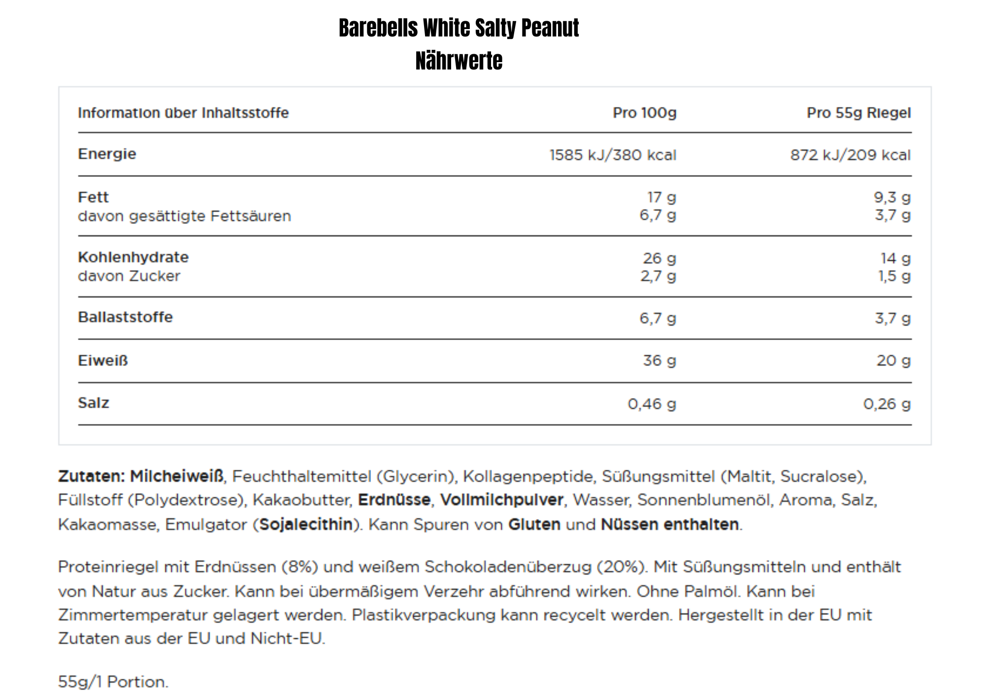 =Wenig Zucker: Jeder Riegel enthält weniger als 2 g Zucker, was sie zu einer ausgezeichneten Wahl für eine zuckerbewusste Ernährung macht.