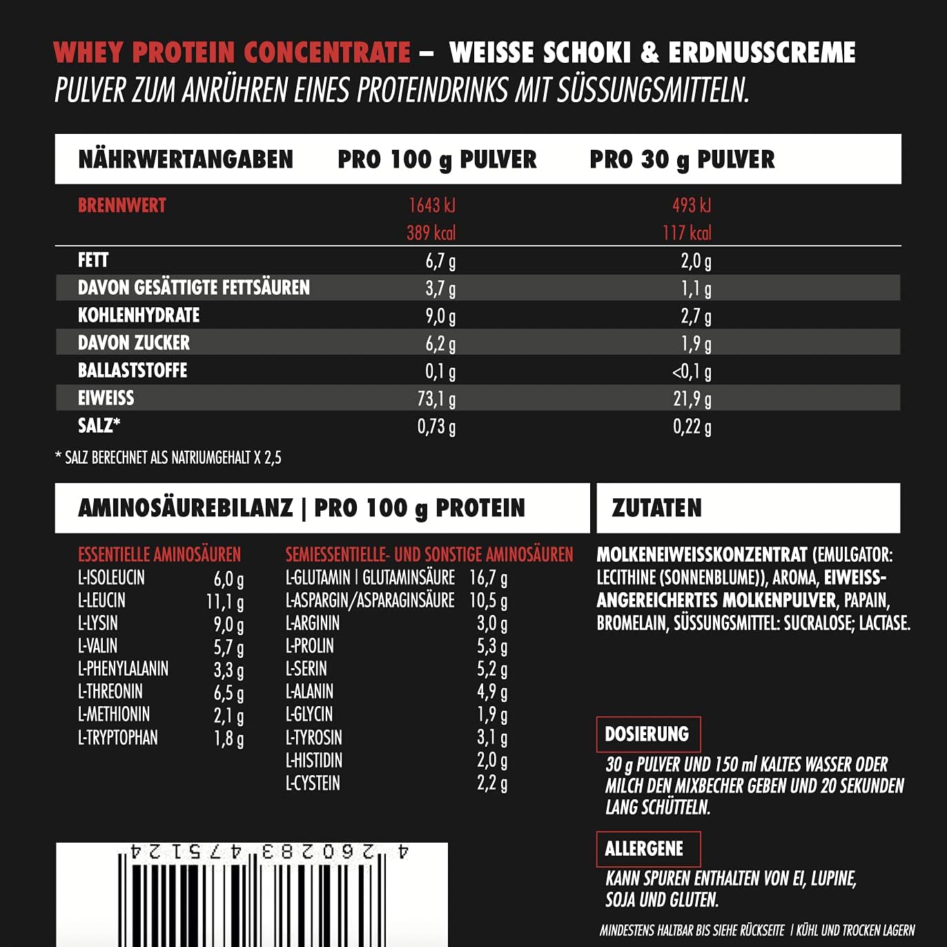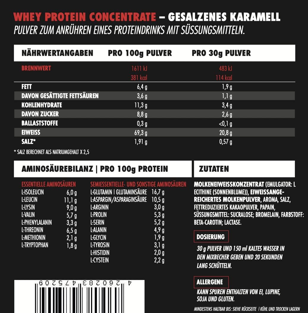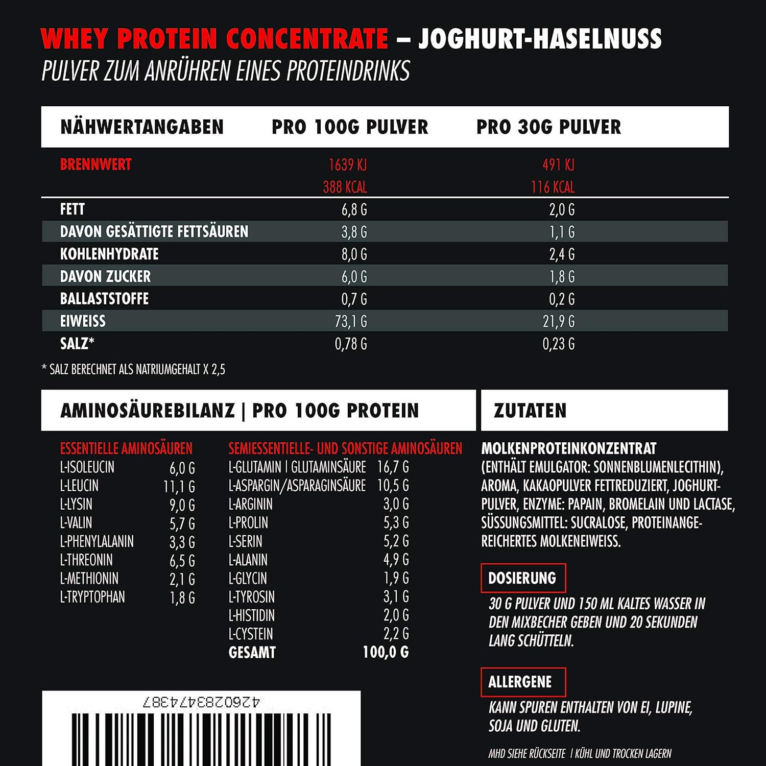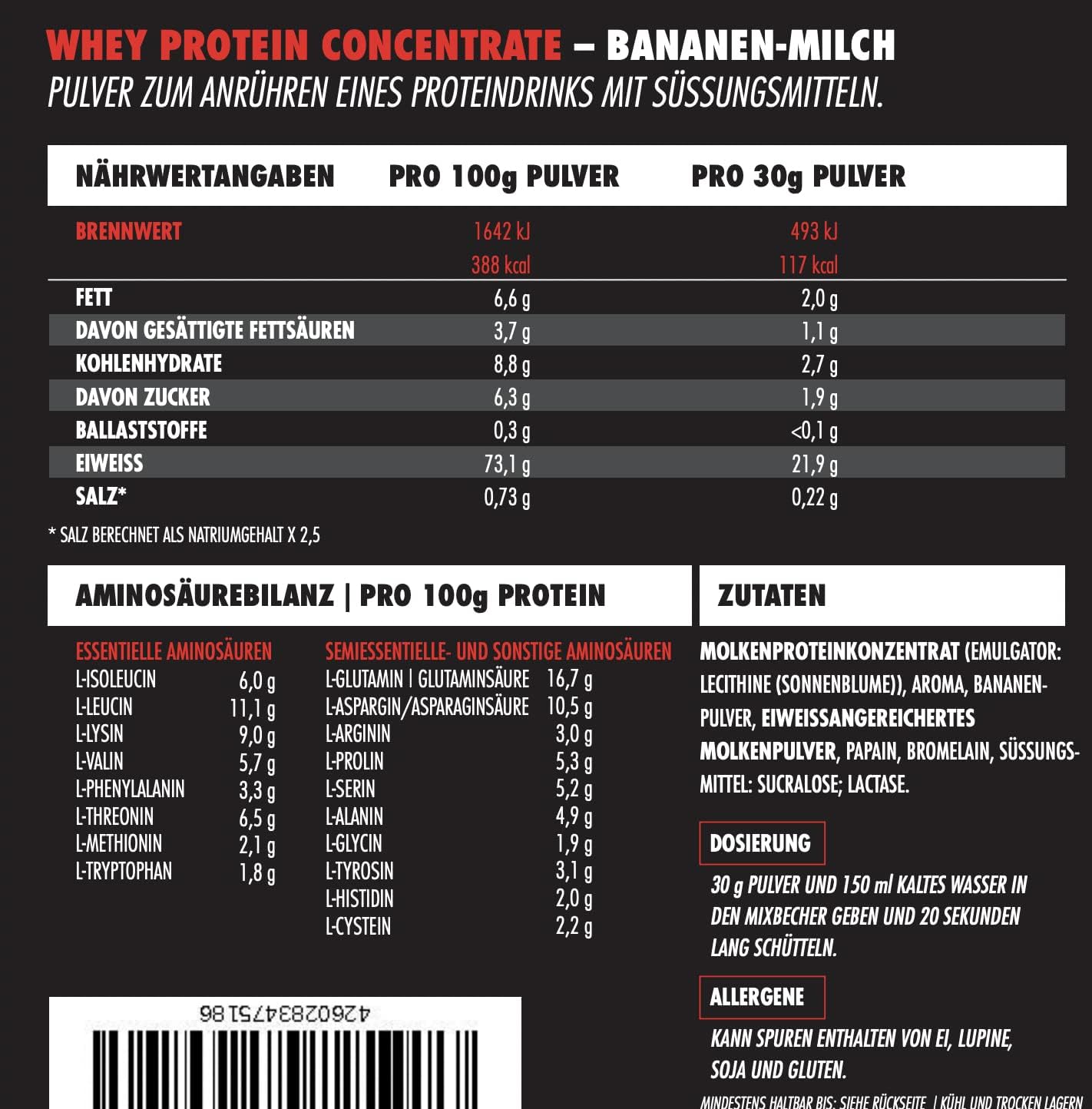 Vermerk zur Analyse: Aminosäuren wurden auf 100g Pulver berechnet!