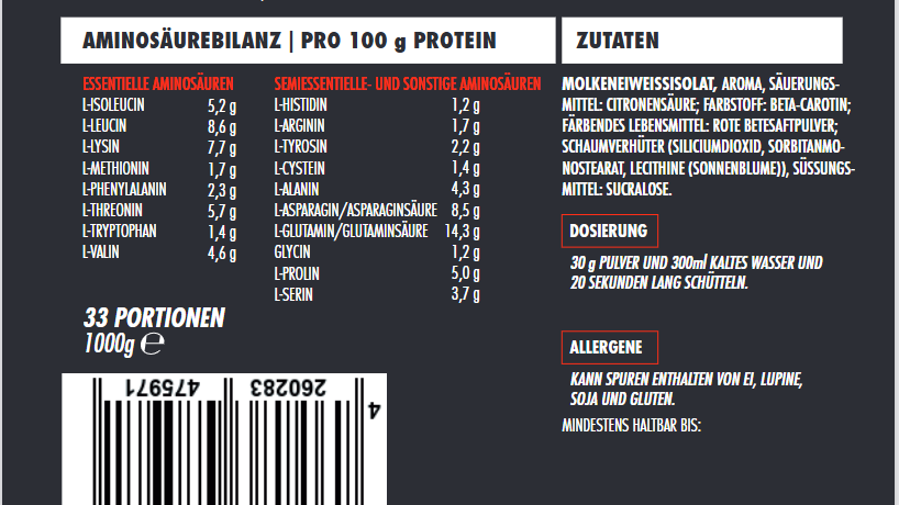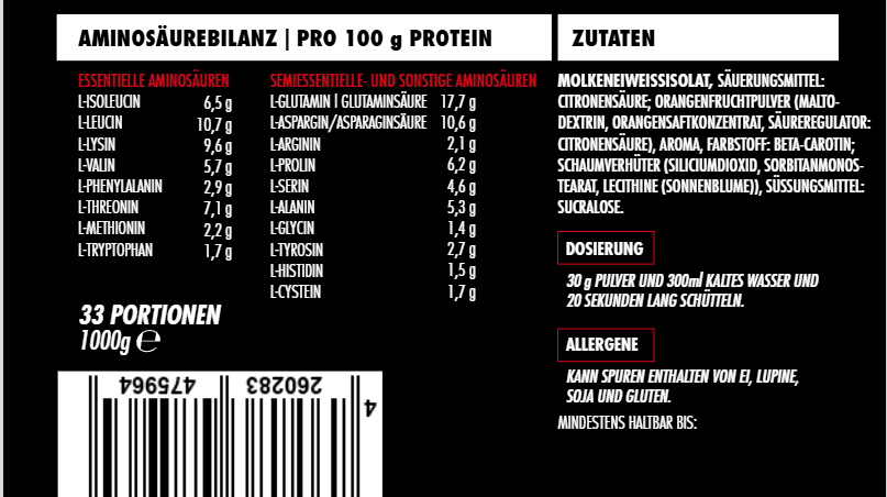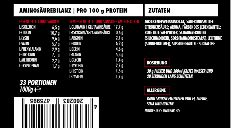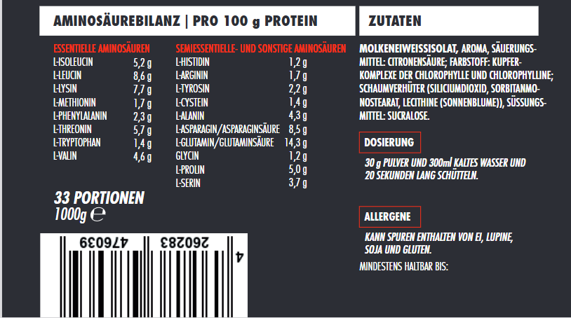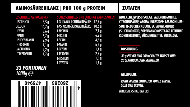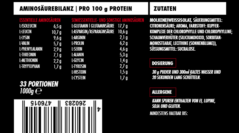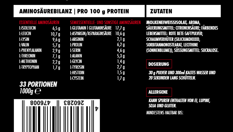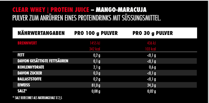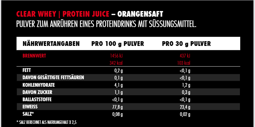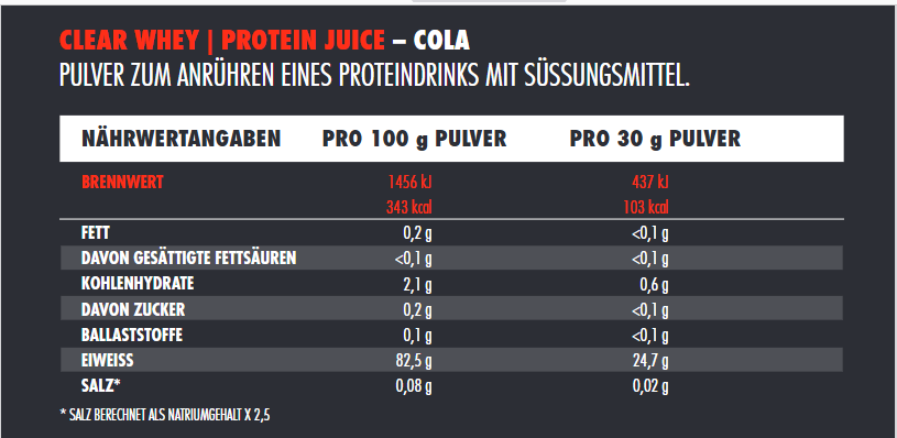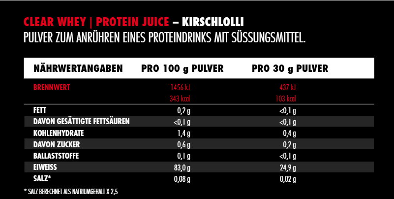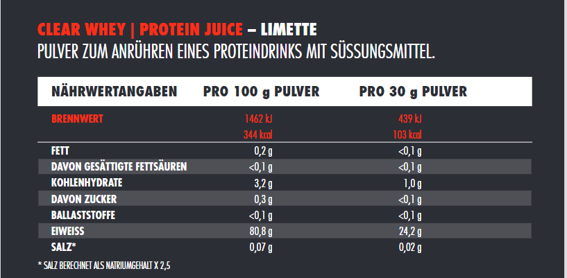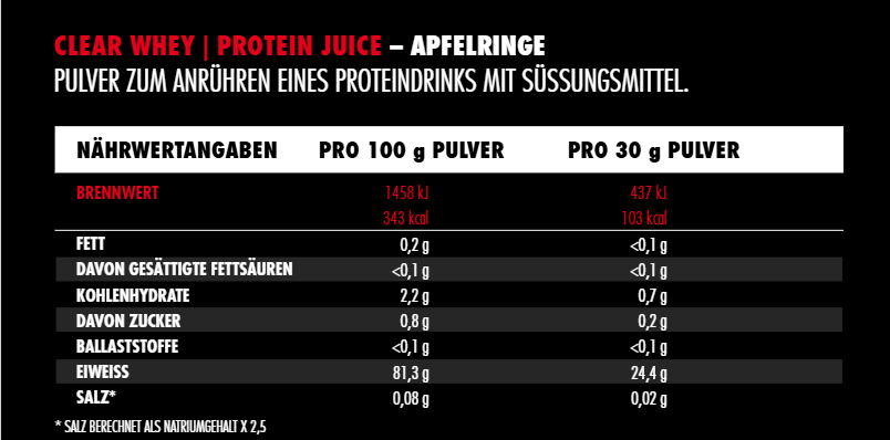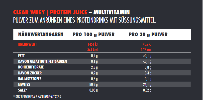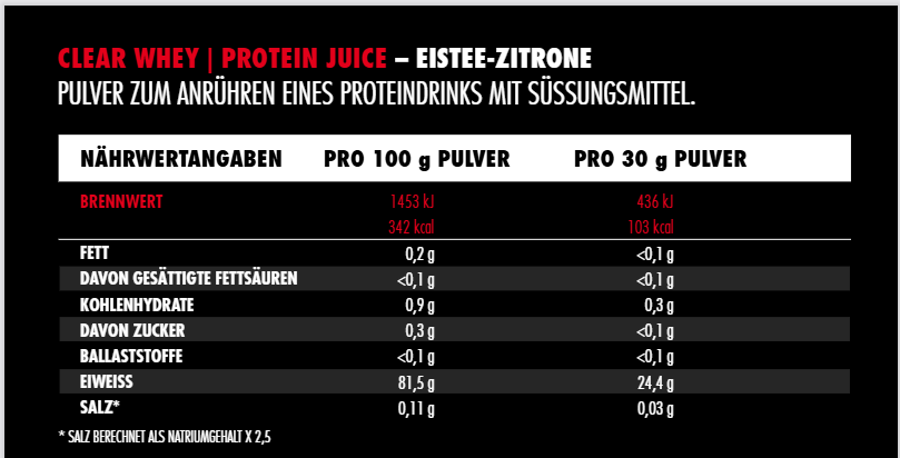 Offizielle Empfehlungen sprechen für Bodybuilder und Kraftsportler von einer Proteinzufuhr von 1,6 bis 2,2 Gramm je Kilogramm Körpergewicht pro Tag, verteilt auf 3-6 Mahlzeiten pro Tag. Besonders vor und nach dem Training sollte dabei auf eine zeitnahe Zufuhr geachtet werden. [2] Zur Verfügung stehen dafür eine Vielzahl hochwertiger Quellen. Von Milchprodukten und Eiern über Fleisch und Fisch bis hin zu Proteinpulvern auf tierischer und pflanzlicher Basis, wie unser Battle Whey oder Battle Vegan . Doch nicht für jeden Gaumen ist es angenehm, mehrere Portionen dieser Lebensmittel tagein, tagaus zu sich zu nehmen. Aus diesem Grund haben wir den Protein Juice entwickelt. Dabei handelt es sich um ein hochwertiges Whey Protein Isolat, welches durch ein spezielles Verarbeitungsverfahren so hergestellt wird, dass es klar löslich ist und schmeckt wie ein Fruchtsaft oder Softdrink. Erhältlich in 5 lecker-fruchtigen Geschmacksrichtungen ist der Big Zone Protein Juice damit eine erfrischend spritzige Abwechslung zu Magerquark und Co. und bietet dazu noch das unschlagbar hochwertige Aminosäurenprofil und die Nährwerte eines Whey Proteins. Das bedeutet, dass der Big Zone Protein Juice mit 82-84 % Eiweiß und extrem wenig Kohlenhydraten und Fett, optimal für jede Ernährungsform geeignet ist und sich zudem sehr gut verdaut, ohne schwer im Magen zu liegen.