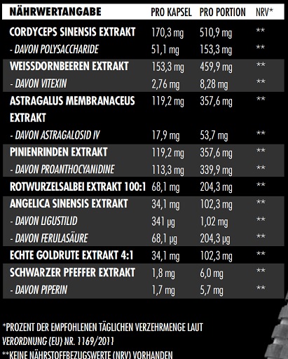 Eine Portion Kidney+ entspricht 3 Kapseln. Diese können prinzipiell zu jeder Tageszeit, vorzugsweise zu den Mahlzeiten, eingenommen werden. Aufgrund des Gehaltes an Antioxidantien und Vorstufen von Antioxidantien empfehlen wir die Einnahme zu einem Zeitpunkt, der möglichst weit weg vom Krafttraining liegt.