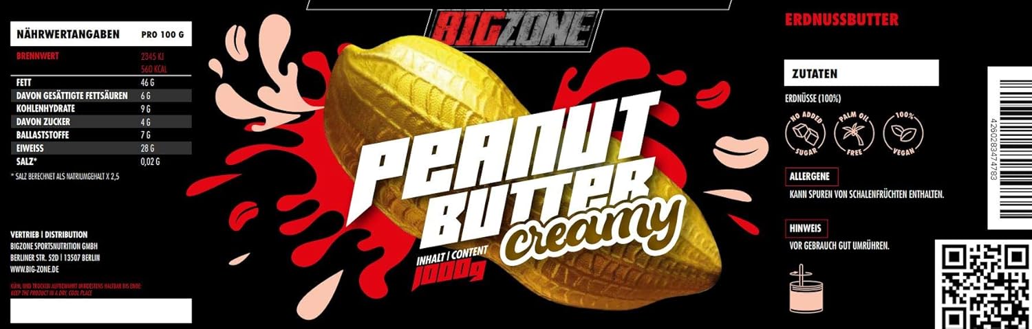 So ist auch die Peanut Butter von Big Zone genauso cremig und saftig wie eine "Originale". Sie besteht je nach Ausführung aus bis zu 100% Erdnüssen und liefert wertvolle Fette bzw. eine ordentliche Portion Kalorien, je nachdem wie man es nutzen oder sehen möchte.