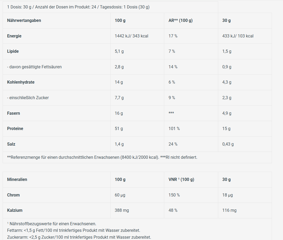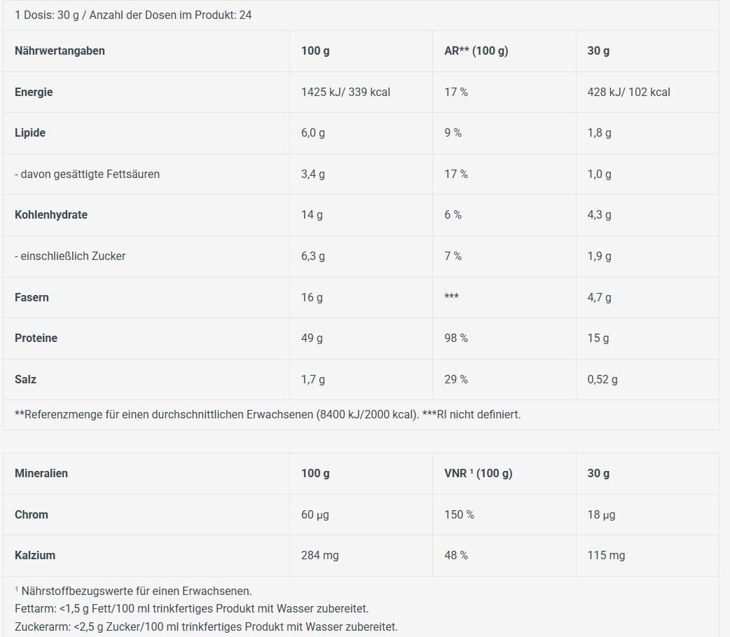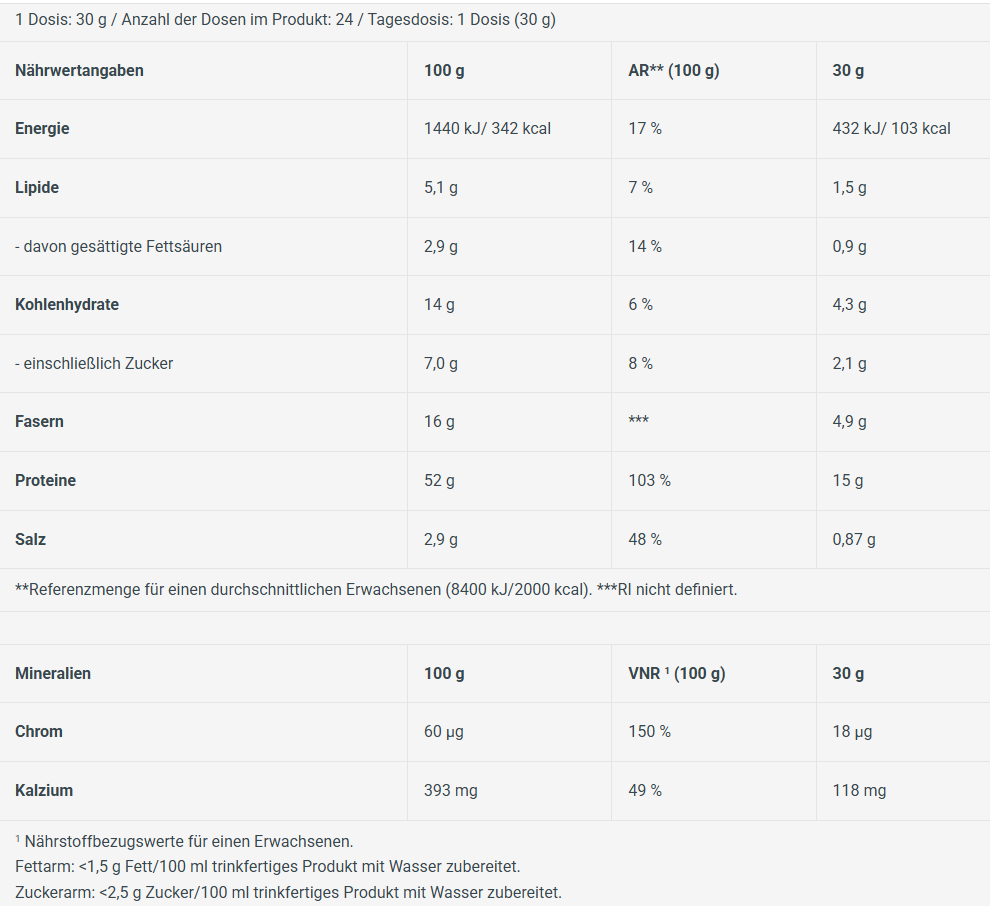 30g Pulver in den Shaker geben, mit 300 ml Wasser aufgießen und schütteln.