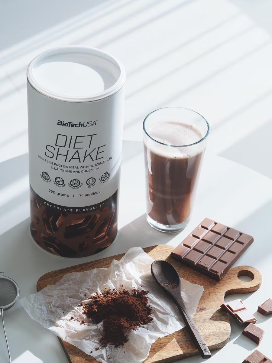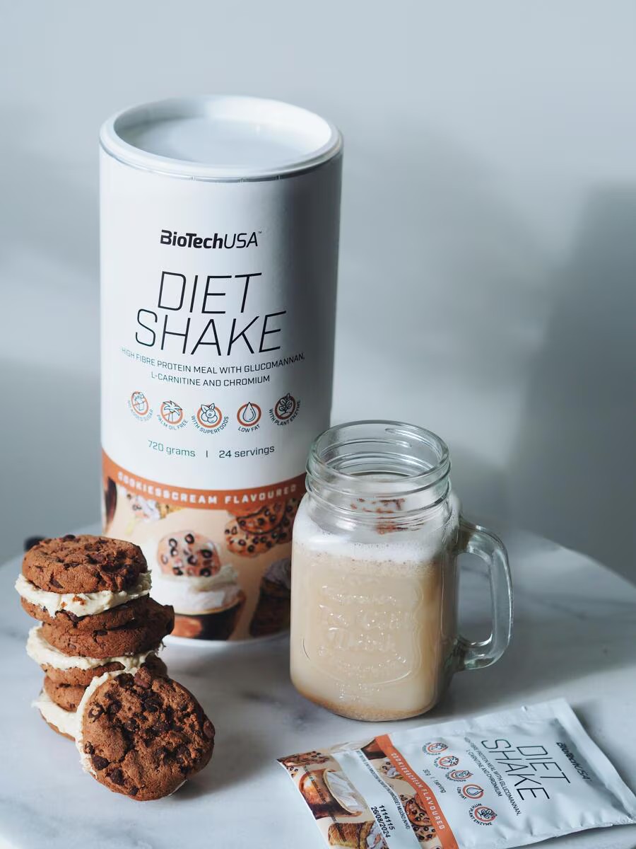 Eine unregelmäßige Ernährung kann die Erreichung der Ziele sehr erschweren, deshalb lohnt es sich unbedingt, den Ernährungsplan sorgfältig zusammenzustellen. Hierbei kann ein praktisches Nahrungsergänzungsmittel ab und zu eine große Hilfe sein. Der Diet Shake kann zum Beispiel hervorragend in einen energiereduzierten Ernährungsplan integriert werden, weil er mit Wasser verrührt pro Portion höchstens 110 kcal enthält. Deshalb ist er zu jeder Tageszeit eine gute Wahl, und schnell ergänzt, wenn Du Hunger bekommst und dir der Sinn nach etwas Leckerem steht.