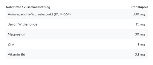 Verzehrempfehlung: Für optimale Ergebnisse nimm täglich 2 Ashwa Pro Kapseln, am besten zu einer Mahlzeit. Die Einnahme kann je nach Bedarf angepasst werden.Aufbewahrung: Kühl und trocken lagern. Vor direkter Sonneneinstrahlung schützen