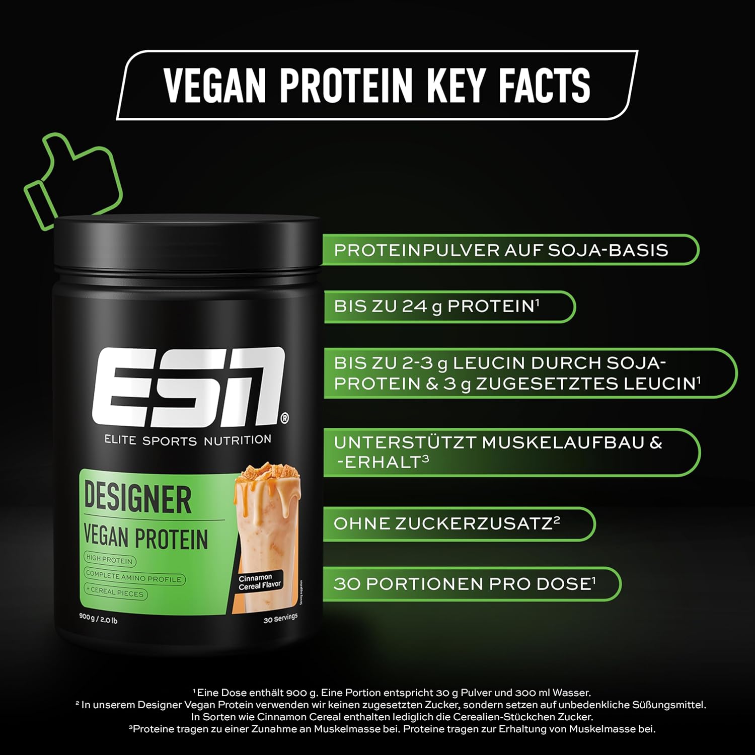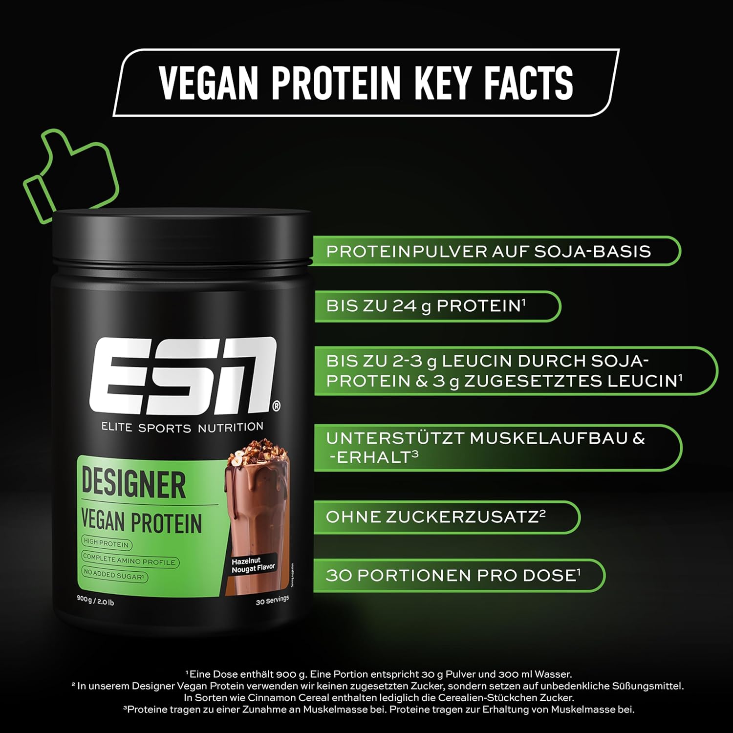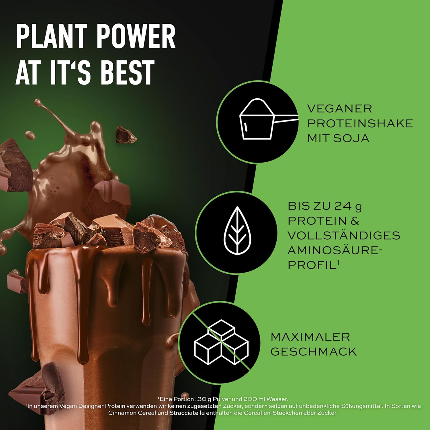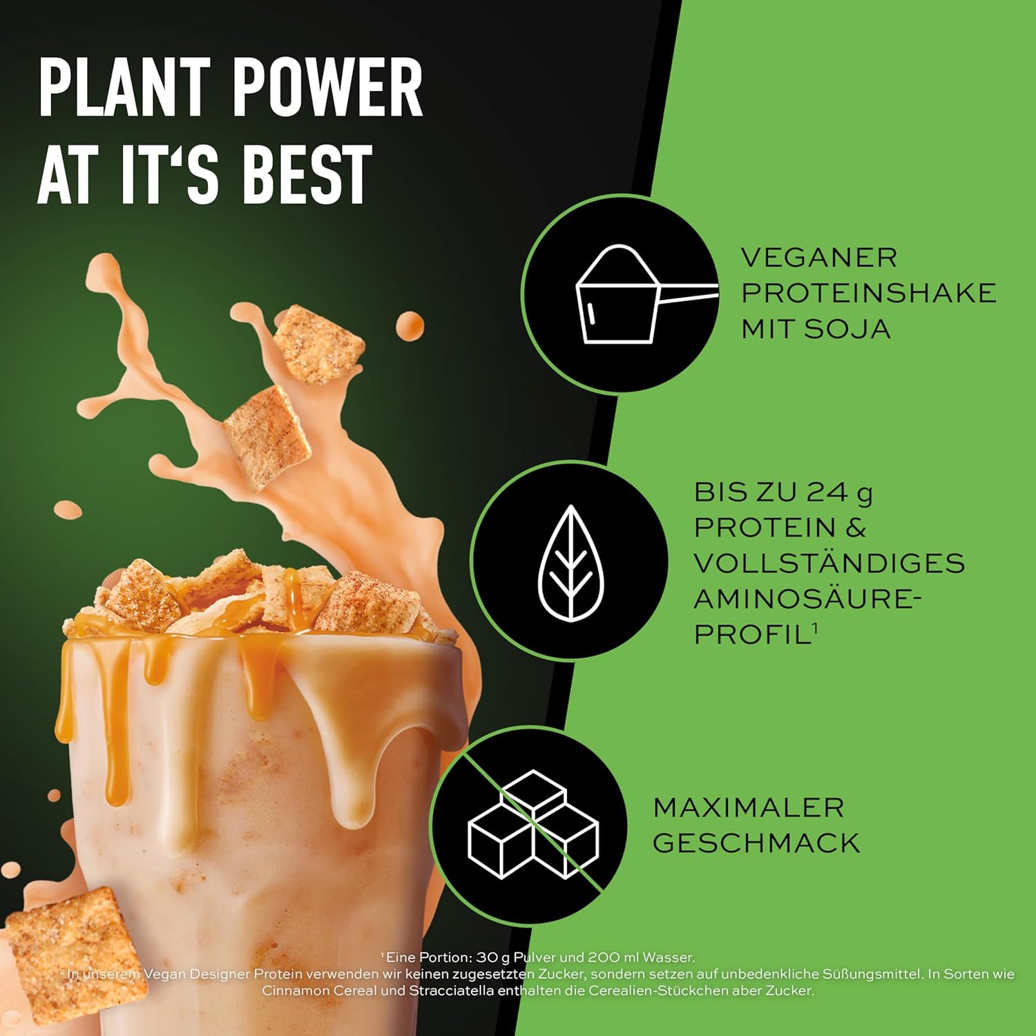 Plant protein power at its best – mit unserem Designer Vegan Protein. Unser veganes Proteinpulver auf Sojabasis bietet dir eine unglaubliche Cremigkeit, einen vollen Geschmack und wertvolle Proteine mit einem vollständigen Aminosäurenprofil – perfekt, um deine Muskeln zu nähren und deinen Proteinbedarf leichter zu decken.1