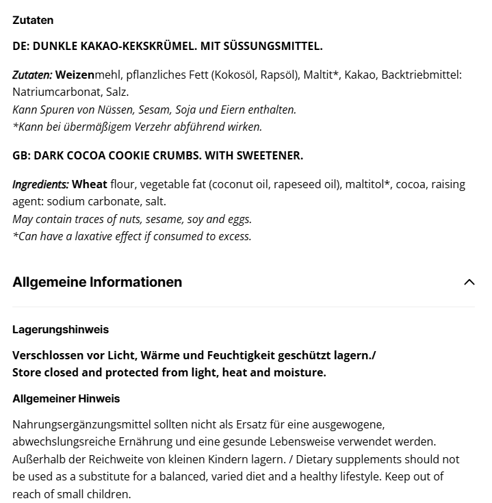 - Hochwertige, vegane Keks-Krümel in der Geschmacksrichtung Dark Chocolate