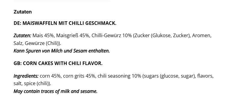 • Chili Flavor: Vegan, fettarm und mit nur 29 kcal pro Waffel – würzig, leicht und mit einer angenehmen Schärfe.