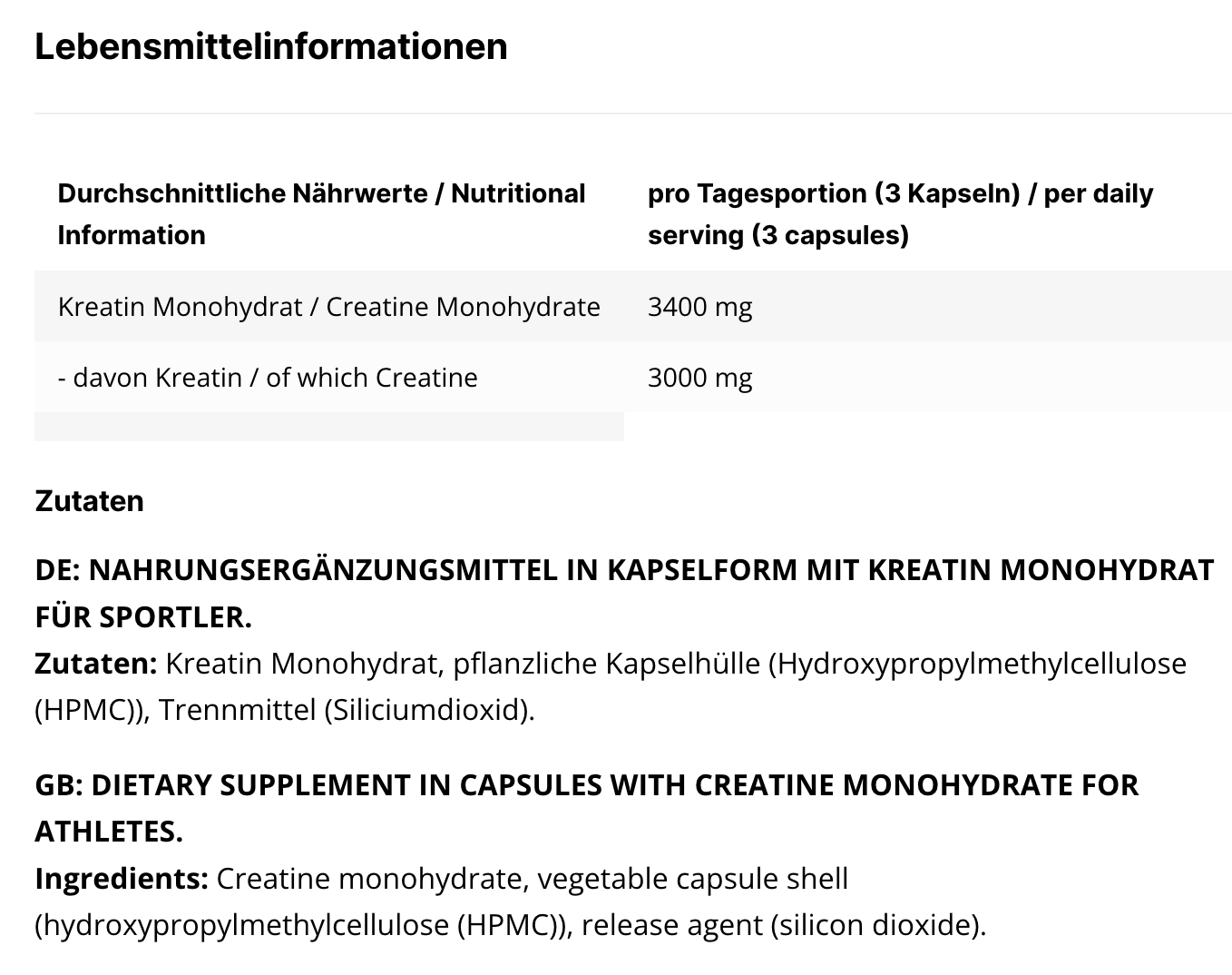Mit den Creatine Monohydrate Caps von Inlead Nutrition hast du ein Supplement, das ideal in deinen aktiven Alltag passt und deine Leistung bei intensiven Workouts unterstützt.