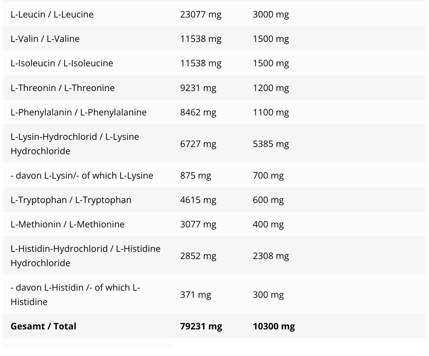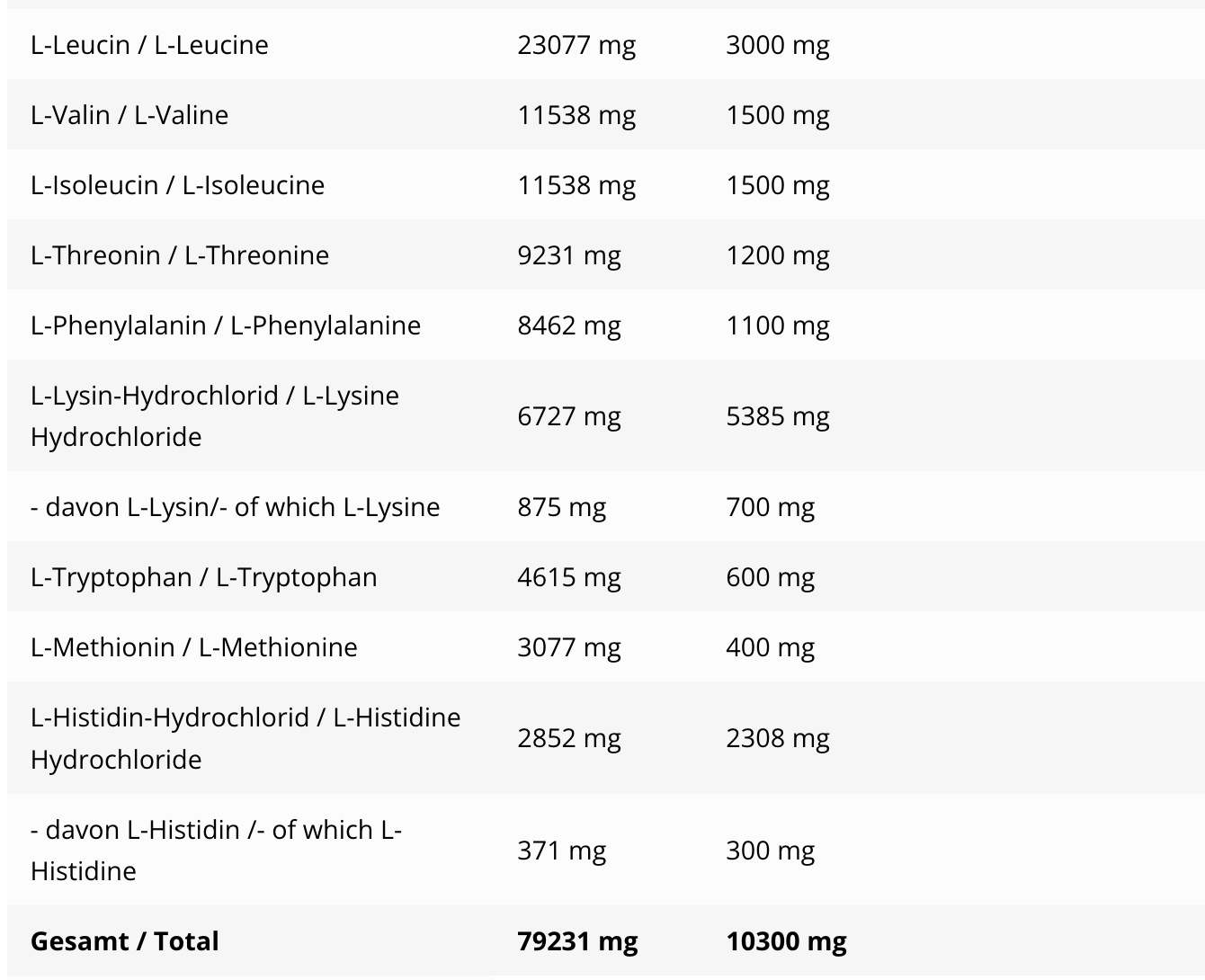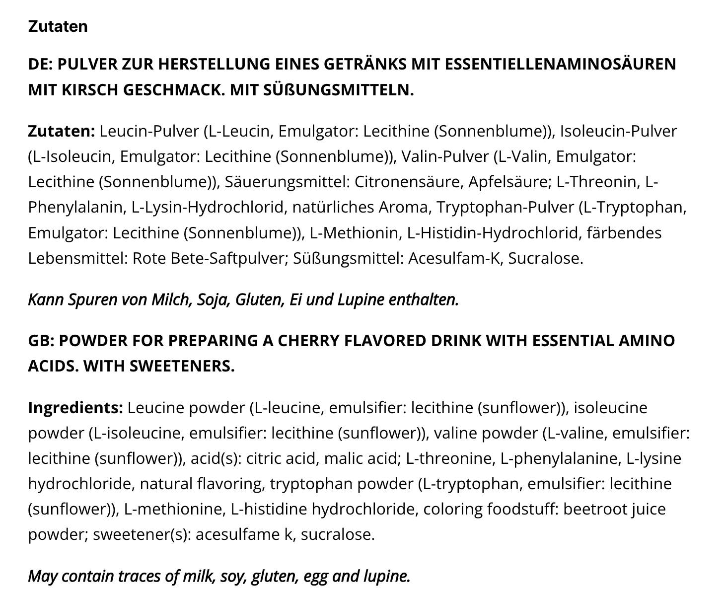 – Ganzheitliche Unterstützung für den Körper: EAAs unterstützen zahlreiche Funktionen und helfen, die tägliche Versorgung mit wichtigen Bausteinen sicherzustellen.