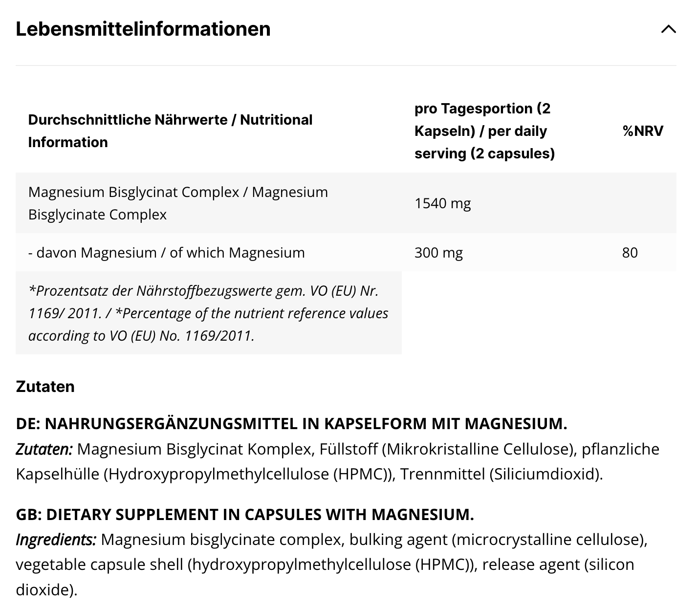 – Magnesium Bisglycinat Komplex – schonend und gut verträglich