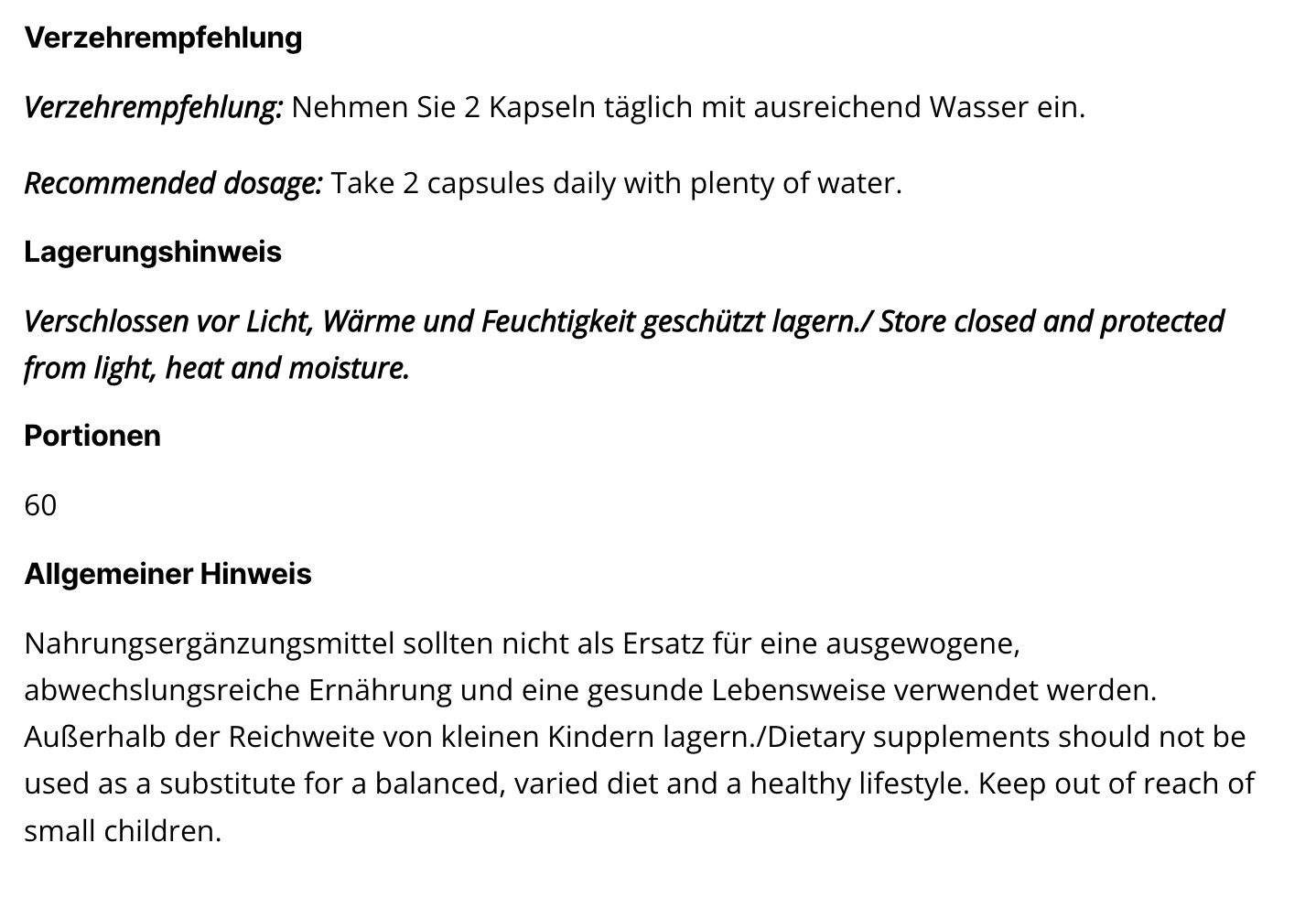 – Empfohlene Tagesportion – 2 Kapseln täglich