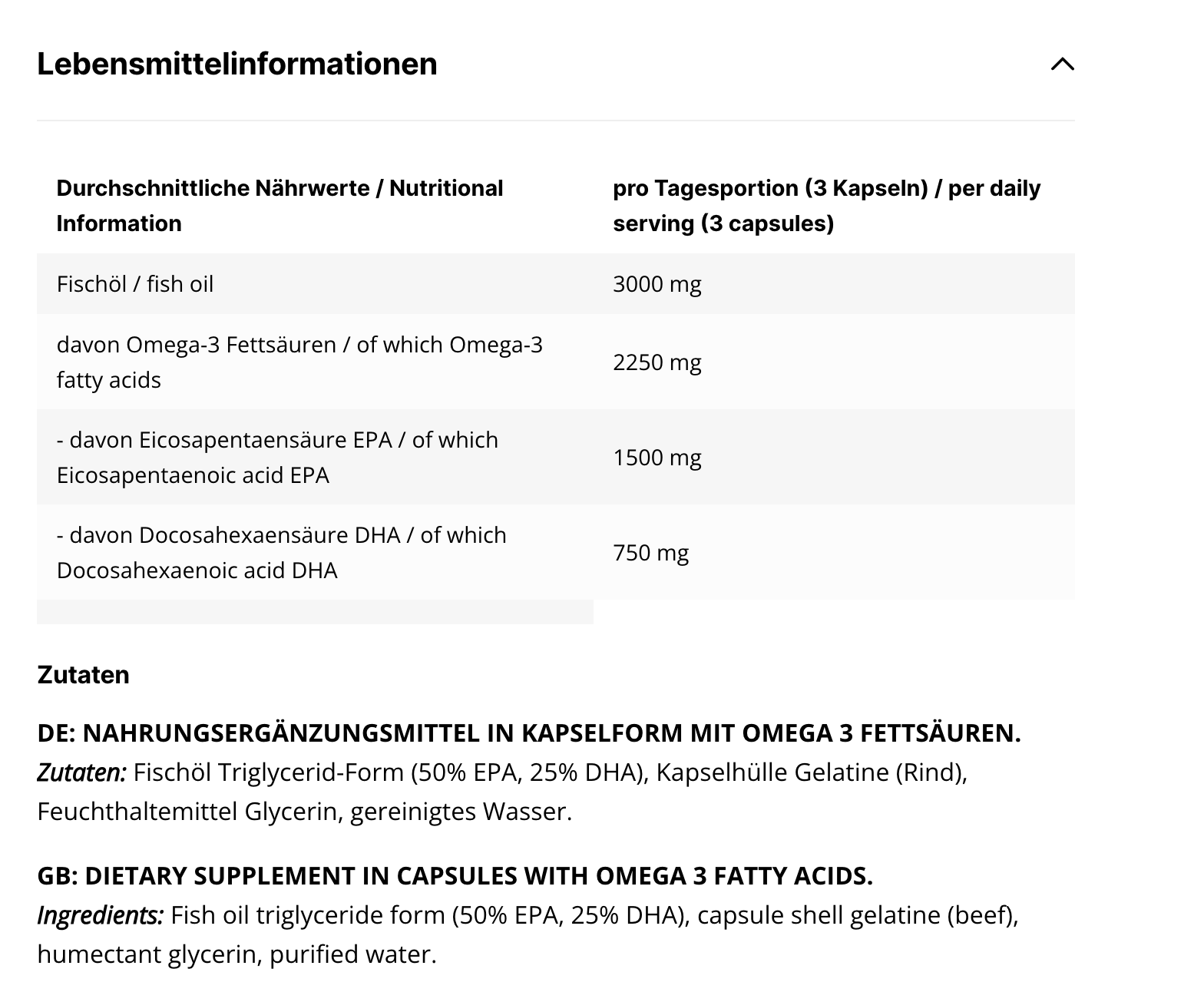 Unsere Omega-3-Kapseln liefern EPA und DHA, die zur normalen Funktion von Herz und Gehirn beitragen und somit eine wertvolle Ergänzung für den Alltag darstellen.