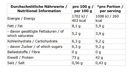 - Hoher Proteingehalt: Liefert eine Extraportion Protein zur Unterstützung von Muskelaufbau und -erhalt.