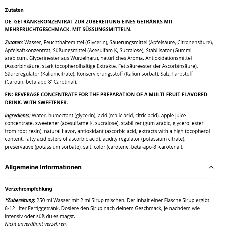 - Ergiebig: Ein Fläschchen reicht für über 8 Liter erfrischendes Getränk.