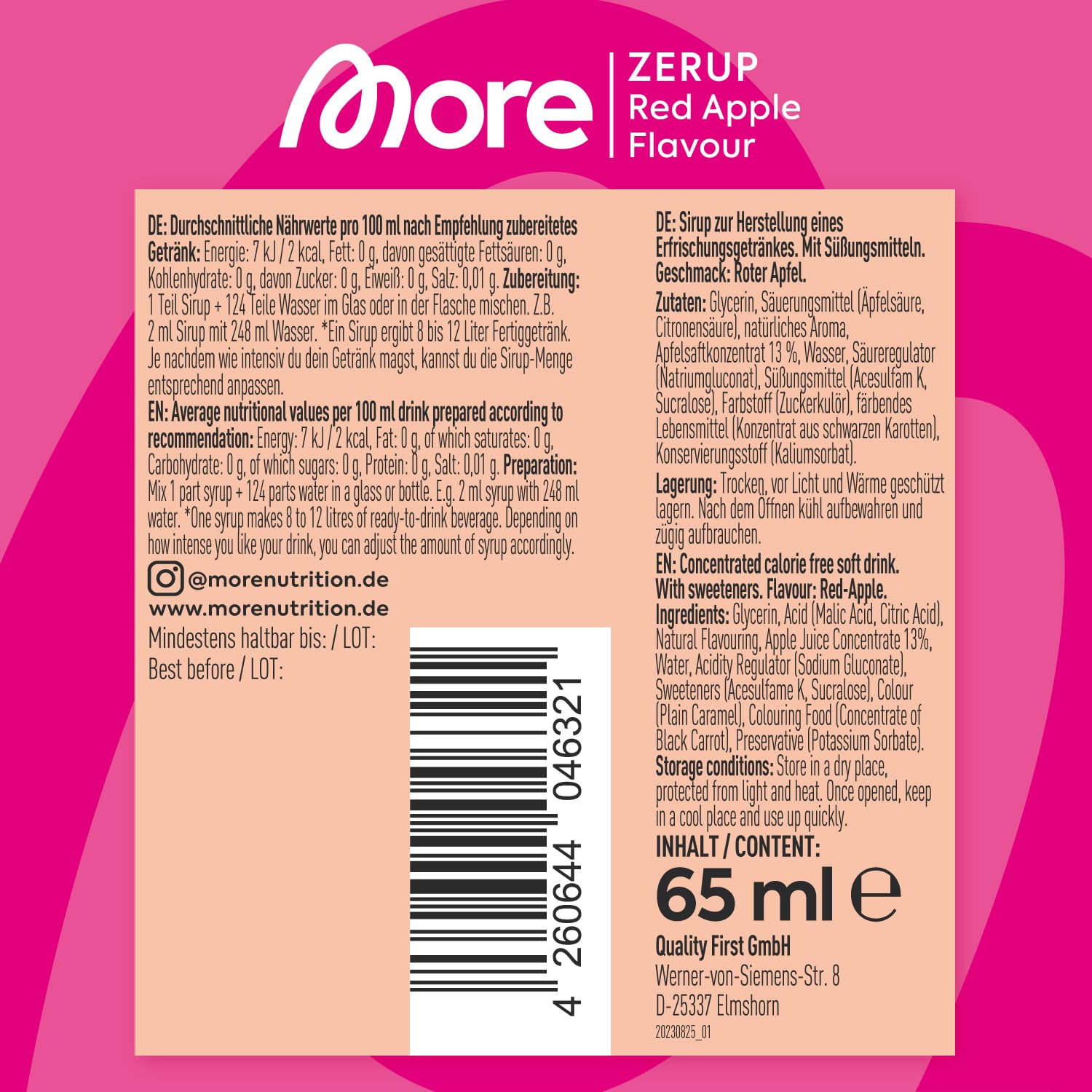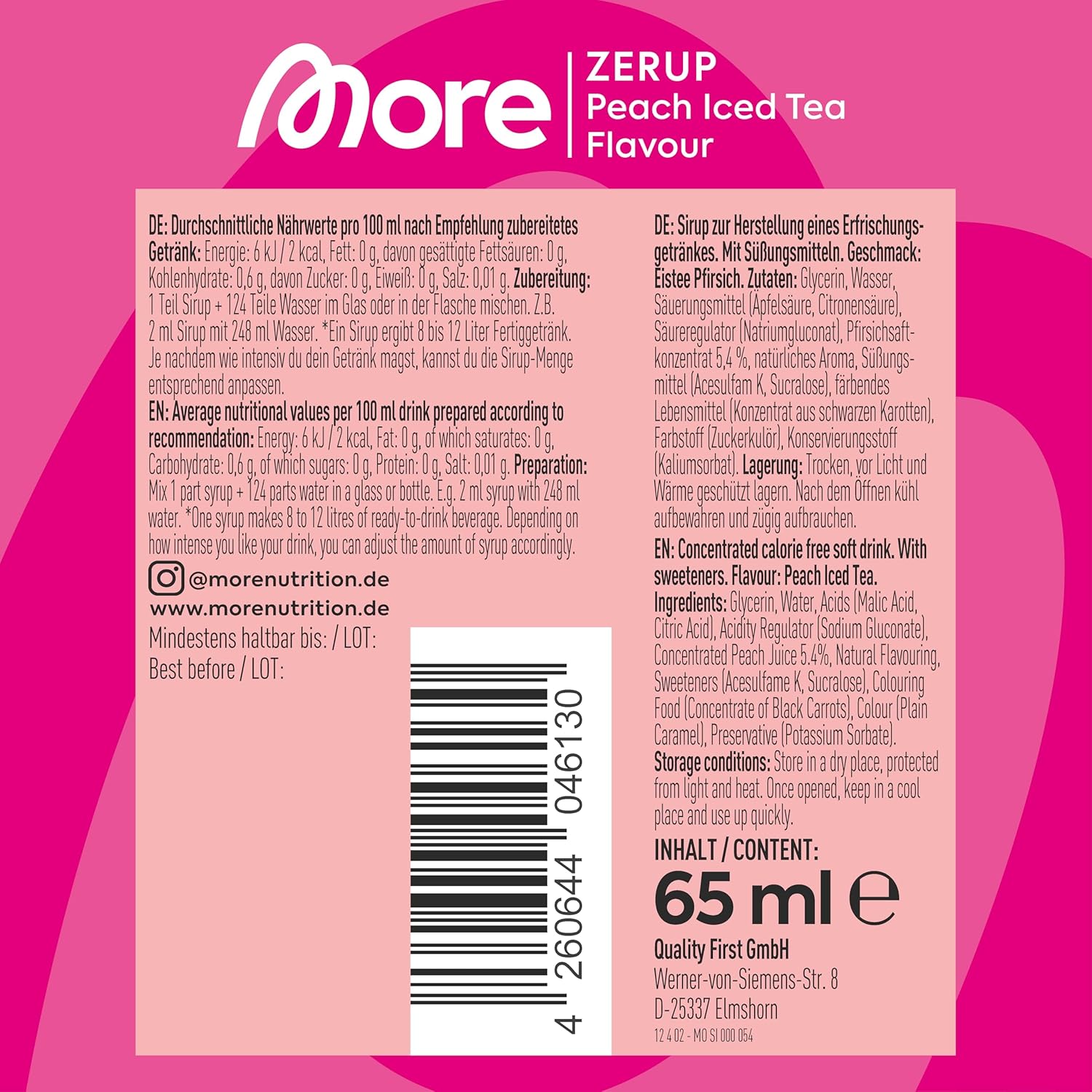 More Nutrition Zerup ist ein zuckerfreier Getränkesirup mit lecker fruchtigem Geschmack. Ergibt bis zu 12 Liter Fertiggetränk. Mit seinen natürlichen Zutaten ermöglicht More Zerup es, auf zuckerhaltige Limos zu verzichten und trotzdem nicht nur langweiliges Wasser zu trinken. Misch Dir einfach Dein eigenes, zuckerarmes, fruchtig süsses Erfrischungsgetränk mit Zerup von More Nutrition.