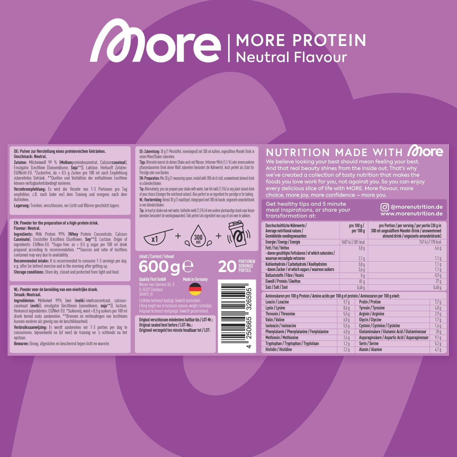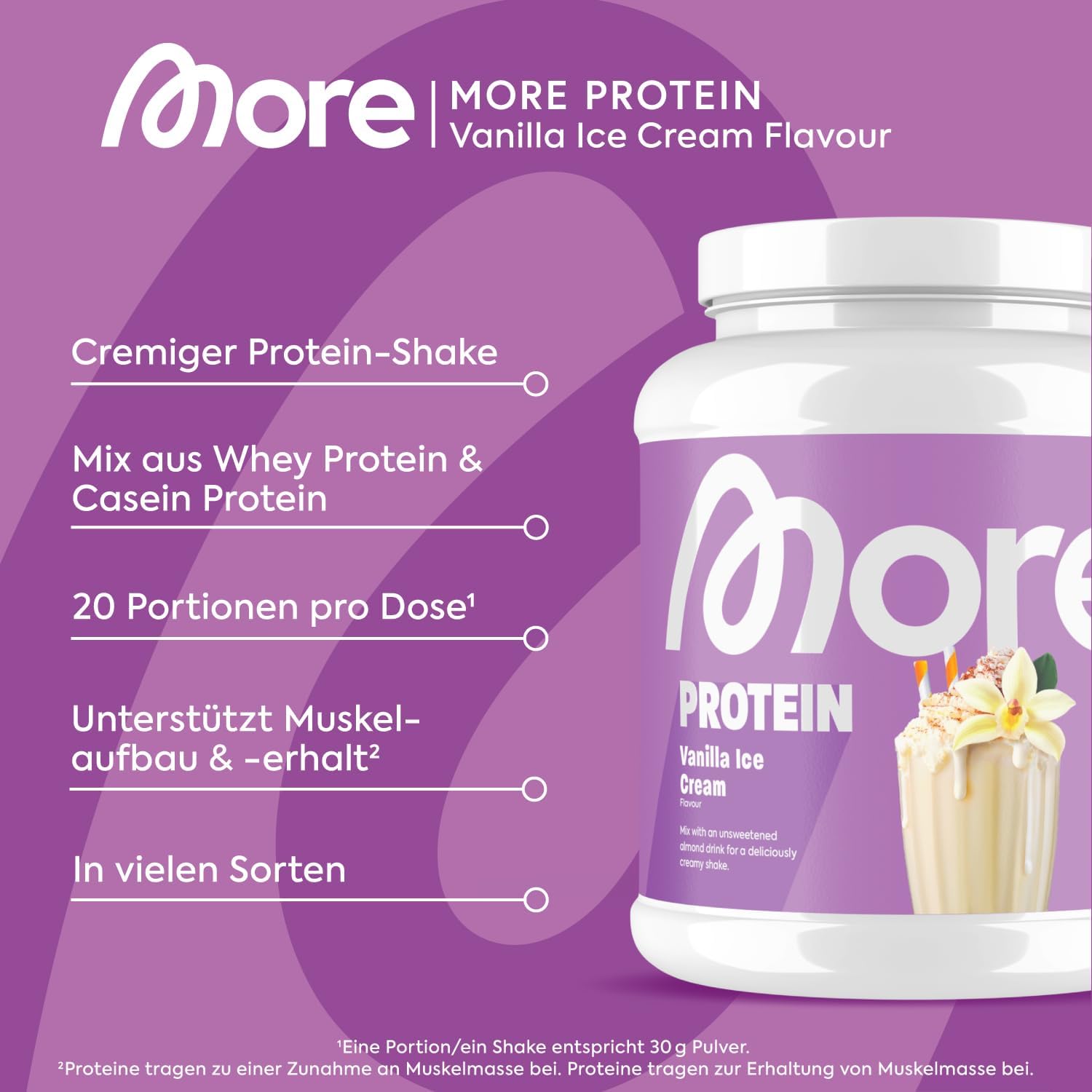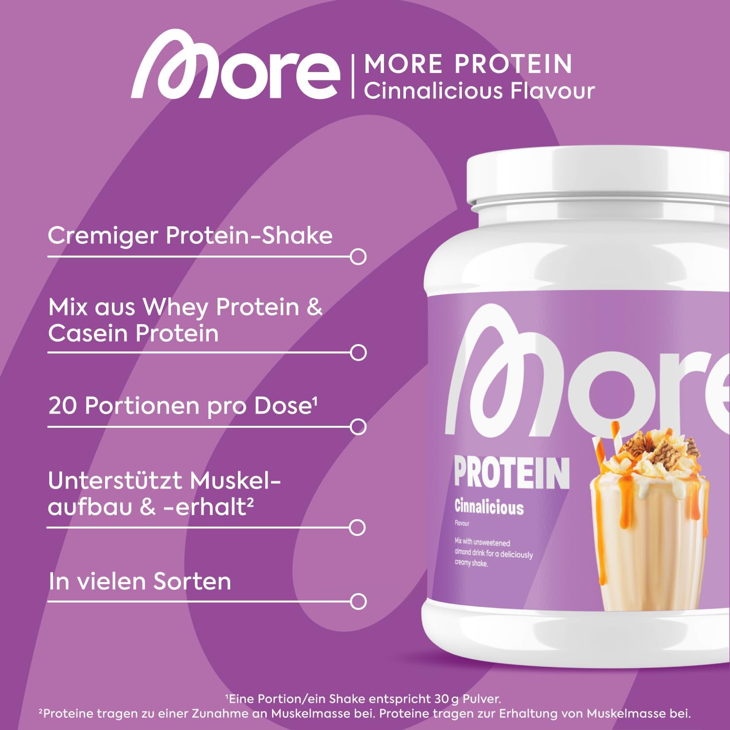 Total Protein von More Nutrition ist ein Proteinpulver aus Whey Protein und Casein Protein. Die ideale Mischung der beiden Proteinformen stellt eine extrem hochwertige Proteinquelle dar, die einer isolierten Gabe überlegen ist: Whey, das die Muskelproteinsynthese besonders stark stimuliert und Casein, das den Muskelbreakdown hemmt, denn Proteine tragen zum Erhalt und zur Zunahme von Muskelmasse bei. Das TOTAL PROTEIN überzeugt allerdings auch mit seinem hervorragenden Geschmack. Außerdem sorgt der Casein-Anteil für eine cremige Konsistenz. Auch während einer Diät bietet sich die Einnahme von TOTAL PROTEIN an. Es unterstützt nicht nur die Gewichtskontrolle und den Erhalt von Muskelmasse, sondern ist auch sehr sättigend und kann somit den Heißhunger stillen.