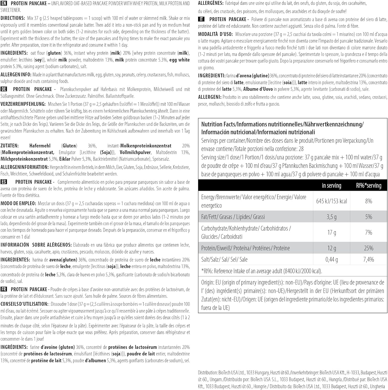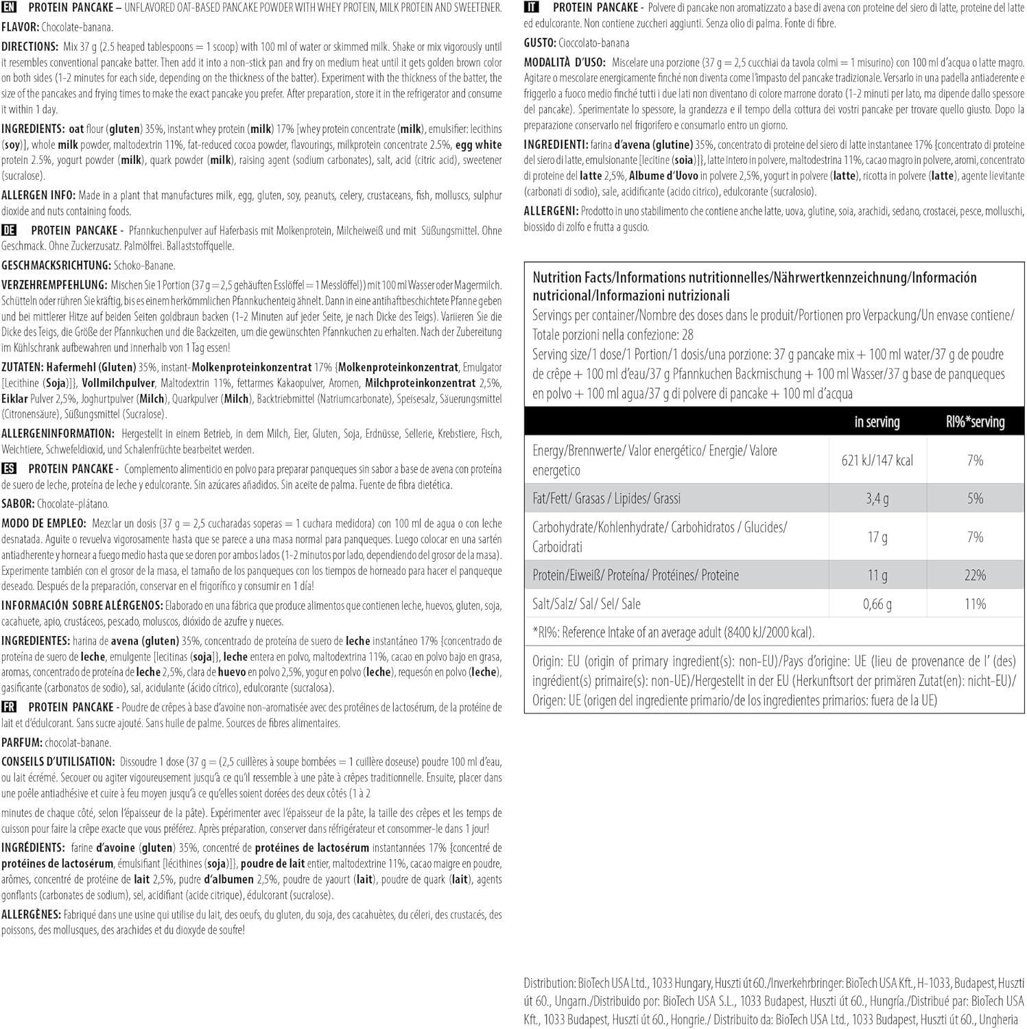 Mit unserem Produkt kannst Du Dir leicht und schnell ganz einfach einen proteinreichen Pfannkuchen zurechtmachen. Wenn Du einmal unseren himmlischen Pfannkuchen probiert hast, dann wirst Du nie wieder den gewöhnlichen Pfannkuchen zubereiten wollen! Als primärer Nutzen unterstützt PROTEIN PANCAKE deine Muskeln mit angemessenen Mengen von langsam und schnell absorbierenden Proteinen (Molke, Ei, Casein) und noch dazu auf eine sehr angenehme Weise. Proteine tragen zum Wachstum und Erhalt von Muskelmassen und auch zur Erhaltung von normalen Knochen bei!*