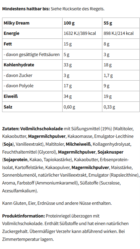 Vollgestopft mit Protein und Geschmack macht jeder Biss in diese seidig weichen und cremigen Riegel ein kleines Abenteuer – sogar mit beeindruckenden 29% Protein pro Riegel serviert!